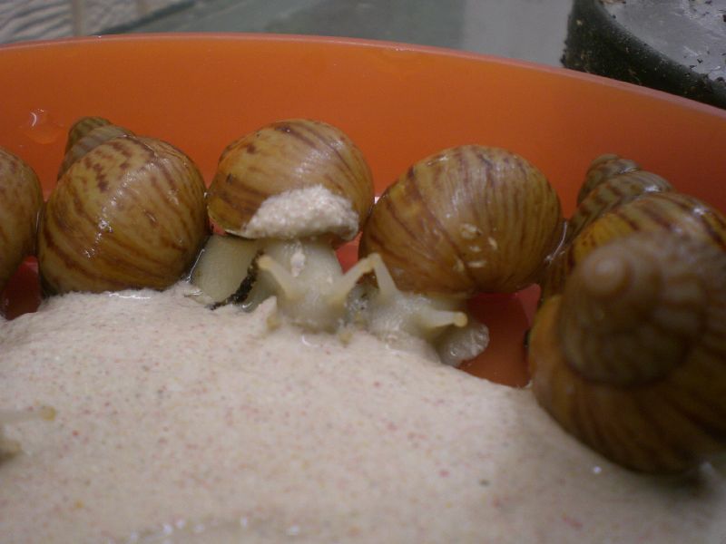 Es ging drunter und drüber, gleich 5 übereinander, dann wieder mit der "Nase" am Grund lang und es furzte und schmatzte am laufenden Band. Mein Mann meint immer "deine Schnecken machen beim Fressen unanständige Geräusche"