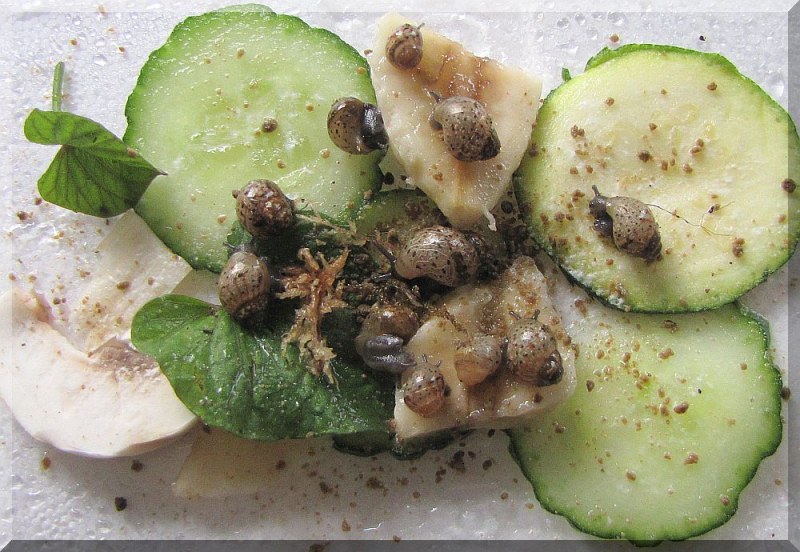 Abby hat geschrieben:2. waren bei ihrer Ankunft genau 3 Schnecken-Babies sehr, sehr klein - so wären es nun naturgemäß auch noch immer diese 3, die im Vergleich zu den anderen im Wachstum zurück sind. Denn sicher ist ja: wachsen tun sie.