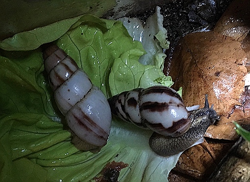 Die kleinen Limicolraria agathina sind unterschiedlich groß , weil die größere der Babys ( auf der grossen Schnecke ) schon vor gut drei Wochen geschlüpft ist. Ich aber mit Fotos noch warten wollte um zu sie besser zu erkennen. Und nun ein paar Bilder . Liebe Grüße Bambina