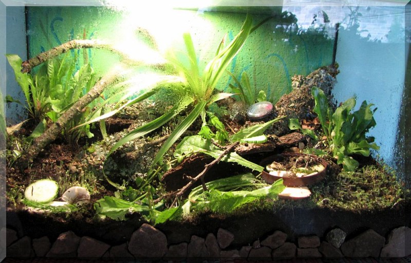 Heute habe ich das Terra auch schon umgestalten müssen, weil mir das ganze schöne Holz samt Flechten und Moos angefangen hat zu schimmeln. :eek: