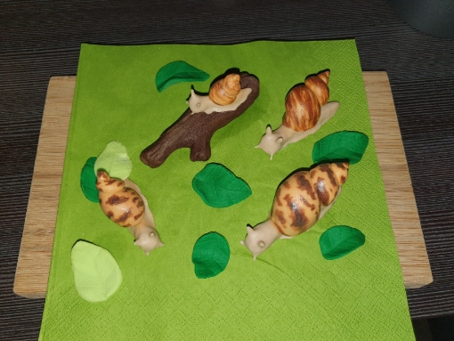 Die Schnecken und auch alles andere wurde mit Hand geformt, man kann sich das so vorstellen ,als wenn man mit Knete arbeitet.