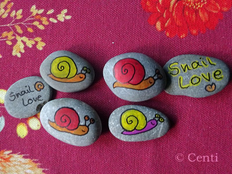 Also habe ich mir gedacht, warum nicht wieder anfangen und dabei versuchen, das Bild der Schnecke in der Öffentlichkeit ein bisschen zu verbessern? Ob ich dieses hehre Ziel damit erreiche, lasse ich mal dahin gestellt - aber da alle Steine ratz-fatz weg waren, scheinen sie den Leuten immerhin zu gefallen.