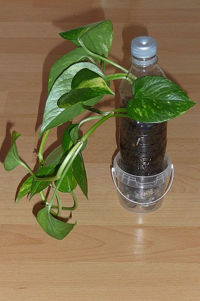 (nur zum Schutz des Laminats steht die Pflanzflasche hier in einem Eimerchen)