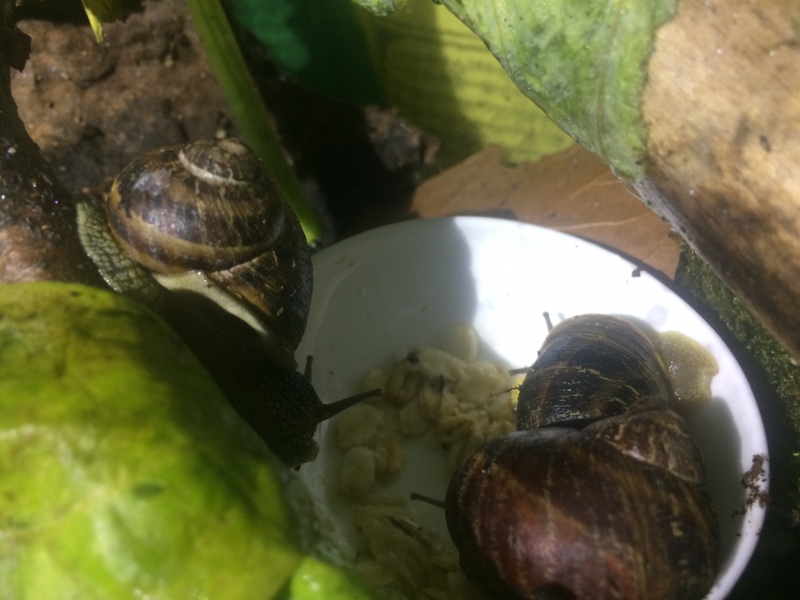 Fakt ist: Wir kauften ein kleines Terrarium, statten es aus (= Terrarienerde/ Zweige/ Sepiaschalen) , pflegten zwei angeknabberte Schnecken gesund ( mit Pflaster über dem Panzer) und alle haben sich prächtig entwickelt und fühlen sich anscheinend sehr wohl.