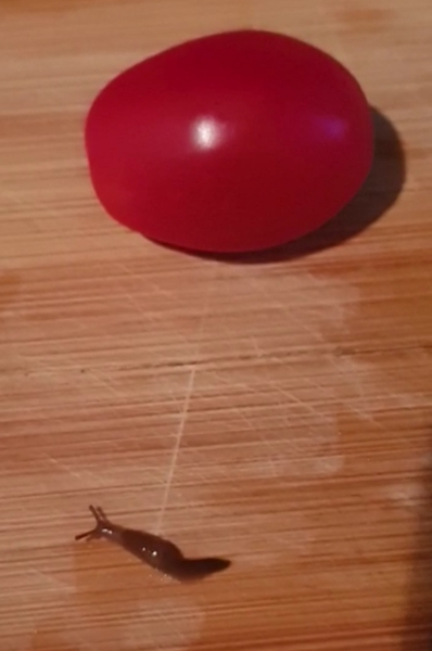Zuerst dachte ich: "Ah, eine Tomatenschnecke".