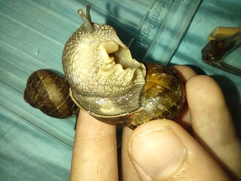 Wir waren gestern spazieren und haben zwei Schnecken gefunden, die sich von den anderen Cornu apersum unterschieden haben.