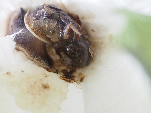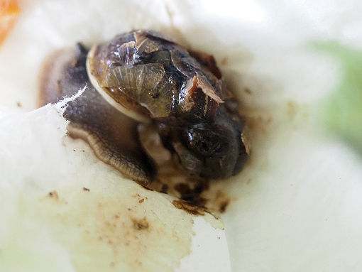 ... ich fand heute Morgen eine schwer verletzte Gefleckte Weinbergschnecke, die noch lebt. Fotos stelle ich im Anhang rein. Soweit ich feststellen kann, hat sie keine Verletzungen im Innenbereich. Aber das Haus fehlt bzw. ist arg mitgenommen. Sie kann sich minimal bewegen, frisst aber nicht.Ich hab's sie nun in das alte Faunarium gegeben, feuchte Küchenrolle rein, Brennnesselpflanze, Sepiaschale, Karotte, Apfel & eingeweichte Haferflocken. Noch hat sie nichts davon angenommen. Ich lasse sie ab sofort in Ruhe ...