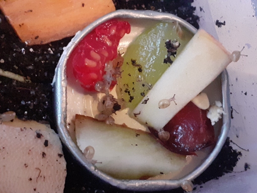 (Geschnexelt wurde am 17.6, Eiablage müsste heute oder gestern gewesen sein, vergraben unter frischem Möhrengrün)