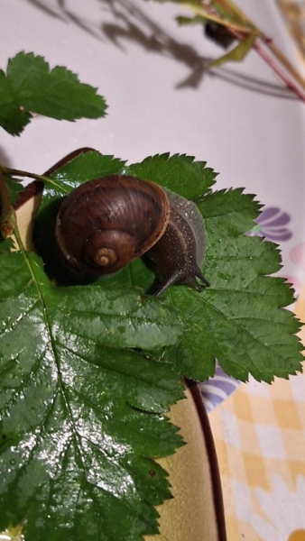 Wir leben in Norwegen und im April kam diese kleine Schnecke auf einer Orchidee zu uns: