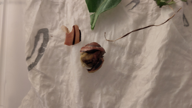 ui die hats schwer erwischt....schwer zu sagen, ich hatte schon verletzte Schnecken die völlig gecrasht waren die es gepackt haben, und andere die weniger augenscheinlich verletzt waren sind gestorben obwohl sie Anfangs fidel rumgeschneckt sind, daher, wenn keine inneren Organe verletzt sind hat sie eine Chance. Sie braucht vor allem Kalk, Du kannst Eier abkochen, die Schale mit einem Mörser oder Stein ganz fein mahlen und mit etwas Wasser zu einem Brei rühren. Ich handhabe das mit Patienten die so schwer betroffen sind so, ich nehme einen kleinen Plastikblumentopf, lege diesen in das Terra , in den Topf lege ich nasse Löwenzahnblätter oder Radischenblätter, so bleibt sie feucht und kann fressen,darauf plaziere ich die Schnecke ( sie mögen es geschützt wenn sie verletzt sind und fühlen sich da sicherer) , press davor streiche ich ihr Kalkbrei hin damit sie nicht groß rausschnecken muss, etwas geriebene Karotte oder Süßkartoffel, oben als Deckel Fliegengitter, sie brauchen viel Frischluft, dürfen natürlich auch nicht austrocknen, deshalb der nasse Löwenzahn im Blumentopf, hohe Luftfeuchtigkeit vertragen sie nicht. Kann sein das sie nichts frisst, aber an den Kalkbrei sollte sie schon gehen, dann heißt es Daumen drücken.
