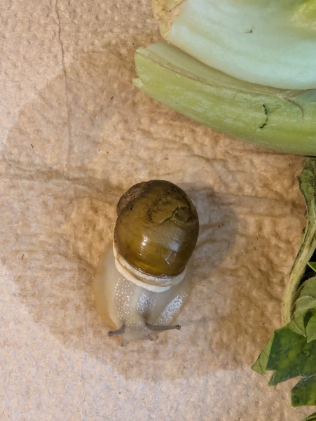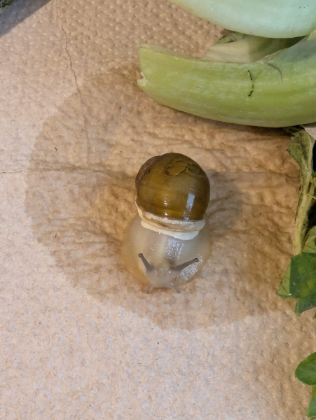 ich habe vor einiger Zeit eine winzige Schnecke im Supermarkt Salat mit nach Hause gebracht. Ihr Haus war sehr stark beschädigt und fragil und so konnte ich sie unmöglich auswildern. Inzwischen ist sie richtig groß geworden und das Haus ist wieder repariert. Könnt ihr mir helfen heraus zu finden was für eine Schnecke es ist? Ich bin nach wie vor unsicher, ob sie für draußen gut gerüstet ist und überlege, sie zu behalten. Das würde allerdings voraussetzen, dass sie ein Partnertier erhält oder was denkt ihr?