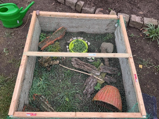 . Im Sommer „bewässere“ ich das Gehege mehr und füge mehr Einrichtung Hinzu, wenn es mir zuuuuu heiß ist, tun mir die Schnecken leid, dann stelle ich sie an einen etwas Kühleren Ort