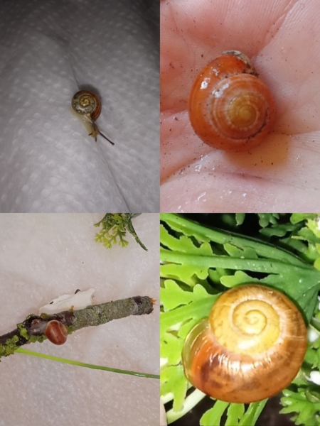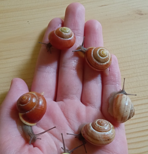 Dann noch eine Teenie orange/braune Bänderschnecke bei der ich aber noch nicht weiß ob Hain- oder Gartenbänderschnecke.