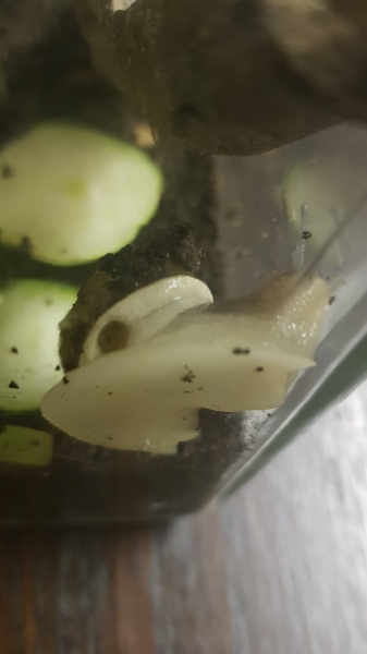 Hallo, das ist die kleine Schnecke die ich vor einigen Wochen in meinem Blumenkohl gefunden habe. Seither wächst sie super, frisst, trinkt buddelt sich ein und klettert. Sie wirkt gesund und munter. Seit 2 Tagen sieht man zwischen Körper und Gehäuse eine weißlich Haut, ich vermute das ist der Mantel? Seit heute kann man durch ein kleines Loch in ihr inneres schauen und ich habe große Angst das es sich hierbei um einen mantelkollabs handeln könnte. Was meint ihr? Und was kann man tun?