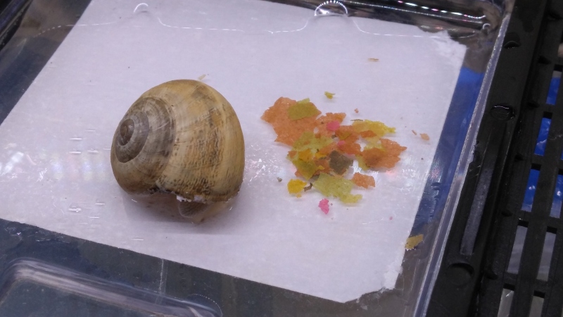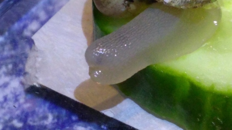 Genau - verletzt sieht die Schnecke ja nicht aus. Warte mal ab, ob sie auf einem Stück Gurke nicht doch noch Mund und Fühler ausfährt...
