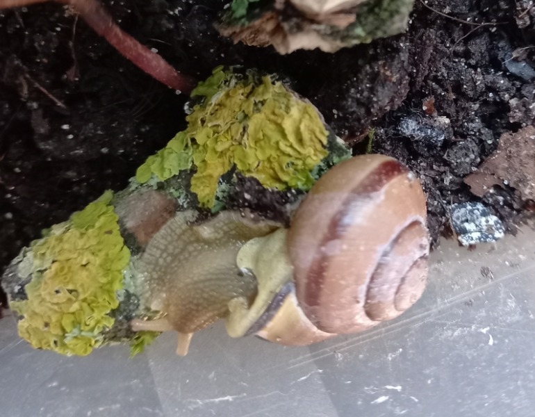 Ich habe mit meinen Kindern ein Schneckenterrarium errichtet.