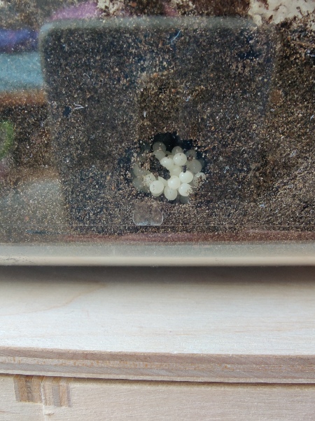 Im Moment ist die Schnecke noch mit Legen beschäftigt, aber netterweise direkt an der Scheibe. Eine zweite Schnecke hat sich auch eingebuddelt. Wir werden morgen mal auf Eiersuche gehen und den Großteil einfrieren. Ein paar werden hoffentlich schlüpfen. Das wird spannend.