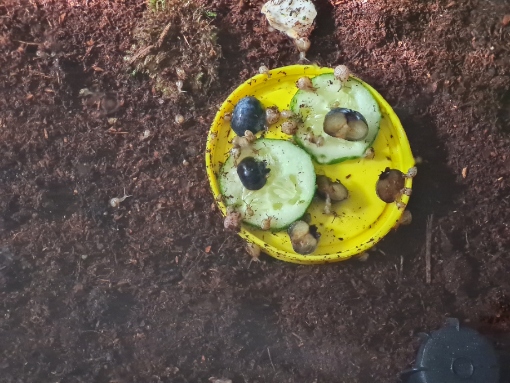 Müsst ihr auch immer wieder Schnecken von den Futterresten sammeln?