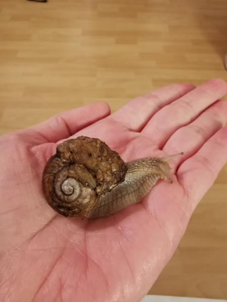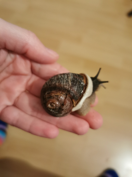 und ihr* das abgefallene Häuschen wieder auf den Rücken geklebt. Das hat leider nicht lange gehalten und jeder Versuch es wieder zu befestigen ging schief, dennoch hat sie* mit der Zeit ein neues Häuschen gebildet.