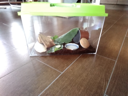 hi pesi, ich weiss nicht wie toll das die schnecken finden, wenn sie regelmässig transportiert werden. meiner erfahrung nach, v. a. auch mit aquarien, sind grössere becken einfacher zu betreiben, als mini-einheiten. quasi vom öko-gleichgewicht her, samt klimasituation im terra. vielleicht findest du jmd, der deine schnecken bei abwesenheit versorgen könnte? stimmt, ohne konkrete abmessungen ist das schwierig zu beurteilen. am foto wirkt das kohlrabiblatt im verhältnis zur box iwie gross u es sieht so aus, als wäre die box so breit wie die sepiaschale lang ist. wenn dem tatsächlich so wäre, dann finde ich die box auch zu klein für ein dauerquartier. die erdschicht wirkt ein bisschen niedrig insgesamt, sie könnte ruhig auch den ganzen boden bedecken. selbst wenn sie im freien auch mal asphaltflächen überqueren, lebensmittelpunkt ist erde, „grünwuchs“ u das was davon abfällt