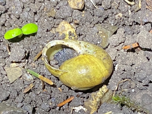 was auch schon fleissig unterwegs ist, sind glaube junge tigerschnegel. die sind aber nicht an den bänderschneckenresten interessiert, zumindest halten sie sich dort nicht auf.