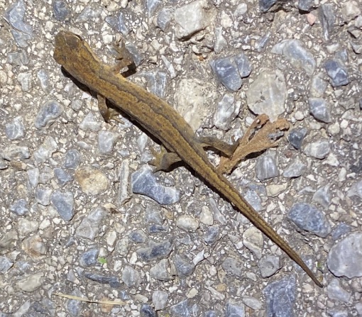 danke dir sehr, HanspeterWilli! des rätsels lösung sind ev. diese kleinen mini-lurche (die eher wie echsen aussehen, aber kein mir ersichtliches ohr haben, die sind so extrem klein, die grossen samt schwanz etwa 5-max. 7cm. die kleinsten unterwegsmit gesamt samt schwanz etwa 2cm). die wurden bei uns eben auch erst im letzten spätsommer sichtbar. ich bin da seit einem halben jahrhundert regelmässig vor ort und sah die letztes jahr erstmals und im spätherbst gleich gehäuft. heuer sind sie noch stärker vertreten u waren noch vor dem ersten grossen schwung von schneckenaktivität sichtbar. konnte sie via netzrecherche noch nicht identifizieren - vielleicht kennt sie jemand?