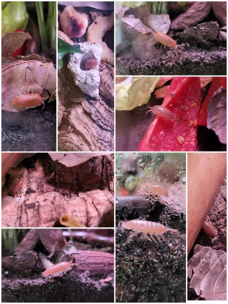 Die Tierchen verhalten sich einfach komplett anders als die online bestellten. Sie erkunden fröhlich das Terrarium, fressen, naschen an der Sepia und am Kalkstein. Diese haben vorher bereits im einem feuchtwarmen Terrarium mit Riesentausendfüßlern gelebt. Ich kann es mir nur so erklären, dass die anderen das Klima einfach nicht gewohnt sind und sich daher dauerhaft verstecken.