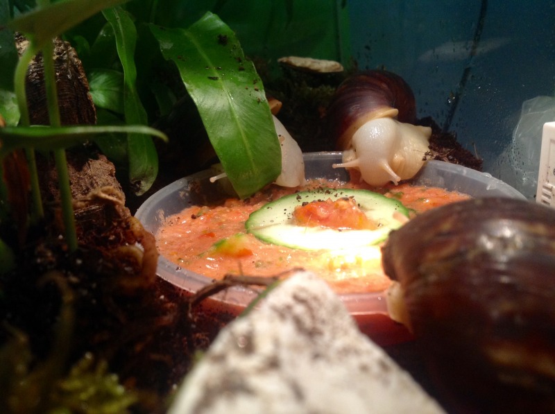 Dafür hab ich heute mal einen Cocktail aus Tomate, Petersilie, Gurke und Süßkartoffel gemixt, um zu sehen wie es ihnen schmeckt.(Keine Sorge, meine Schleimer bekommen auch normales Schneckenfutter :-D)