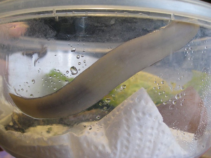 vor ein paar Wochen bin ich nachts in meiner Siedlung beinahe auf eine Nacktschnecke getreten. Ich nahm sie hoch um sie in den nächsten Garten zu setzen und fühlte, die dass ich die nicht kannte. Also durfte sie mich nach Hause begleiten und dort ein schönes Eigenheim beziehen. Bis heute rätsele ich, was es für eine Schnecke sein könnte. Es passt nichts, was ich kenne. Da sie bereits Eier gelegt hat, ist sie adult. Die Größe beträgt 8,5 cm. Limax maximus und cinereoniger scheiden meiner Meinung nach aus, für einen Milax oder Tandonia ist der Kiel zu kurz. Ich würde das Tier gerne Richtung Limacus zuordnen, aber da gibt es scheinbar nichts in schwarz. Auffällig ist noch, dass er alles Grüne wie Salat oder Blätter ablehnt, dafür verrückt ist nach Banane und Pilzen. Gestern habe ich Wasser in sein Becken gesprüht und aus Versehen hat er etwas abbekommen. Vor Schreck hat er sich aufgerichtet und die Seitenlappen seines Mantelschildes für einen Moment seitlich gestellt, wie eine Agame. Das sah irre aus, hab ich noch nie gesehen. Die Eier sind klarsichtig und gelblich, aber bei weitem nicht so groß wie von Limacus maculatus. Den gibt es hier.