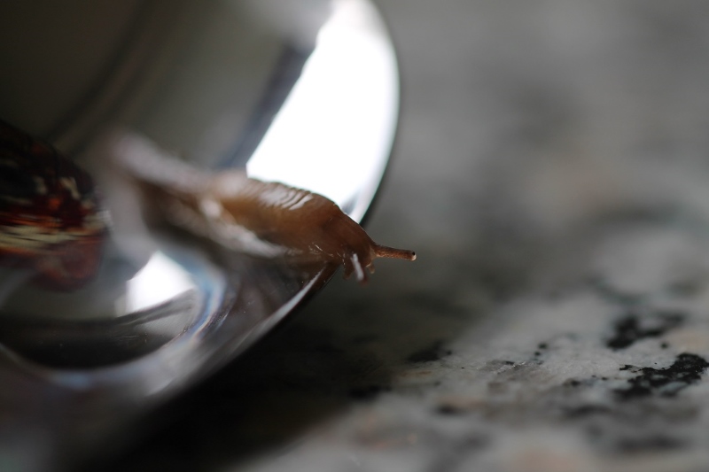 Ich tippe auf "genetzte Ackerschnecke", auch wenn man die Zeichnung nicht sonderlich gut sieht. Sie sind relativ dünn und bewegen sich recht schnell. Man kann gut das Atemloch im hinteren Bereich des Schildes sehen, damit ist es keine "normale" Wegschnecke. Gefressen wird fasst alles an Gemüse, gerne auch proteinreiche Nahrung ( Hundefutter).