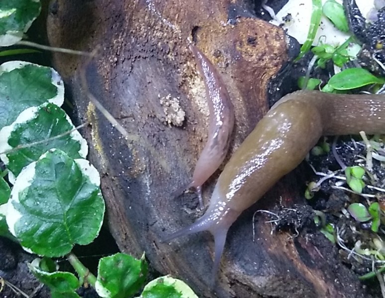 Habe letztes Jahr im frühen Sommer in einem Gartencenter ein paar Pflanzen gekauft und an einem Blumentopf hing eine kleine Nacktschnecke. Ich wusste nicht, welche Art das ist und ob sie überleben könnte wenn ich sie mit den neu gekauften Pflanzen einfach draußen lasse. Also habe ich sie in ein Terrarium gesetzt und dann sicher ein halbes Jahr nicht mehr wieder gesehen. und genauso mysteriös wie sie verschwand, tauchte sie nun vor kurzem wieder auf, riesig groß und hier und da wuseln einige Babies und Jungtiere herum.