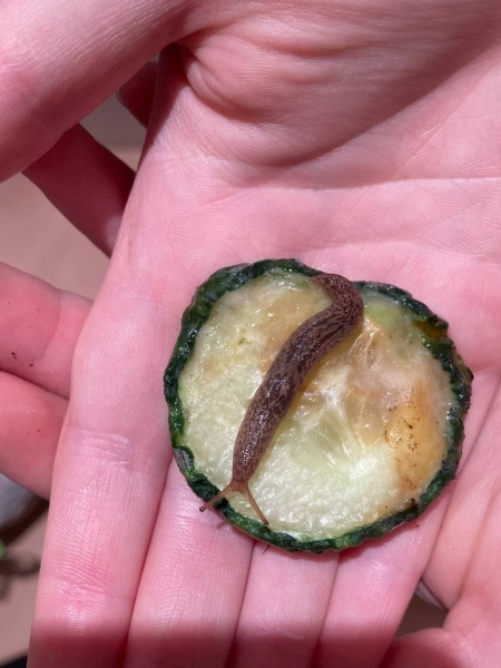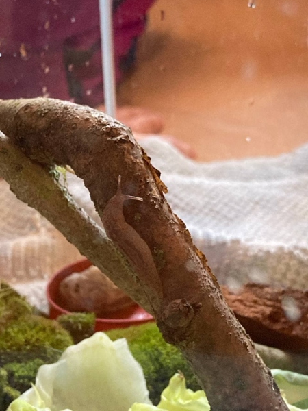 Wir haben heute eine winzig kleine dunkelbraune Nacktschnecke mit einem schwarzen Strick auf dem Rücken im Blumenkohl gefunden. WIr wussten nicht so genau, was wir mit ihr machen sollen. Wit wollten sie nicht raus setzen, da es da so kalt ist. Also haben wir sie in ein Glas getan, Löcher in den Schraubverschluss gemacht und dieses nicht ganz zugeschraubt. In das Glas haben wird Erde, Blumenkohlblätter und etwas Blumenkohl getan. Wir haben dann gelesen, dass Nacktschnecken überwintern und dachten, dass ein Hin und Her mit den Temperaturen nicht so gut wäre. Also haben wir sie jetzt erstmal zurück in den Kühlschrank gestellt. Hat jemand einen Rat? Wäre Zimmertemperatur besser? Oder kann man sie raussetzen?