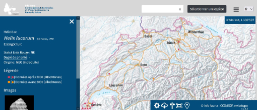 https://lepus.infofauna.ch/carto/8266Fundorte der Gefleckten Weinbergschnecke (Cornu aspersum) sind in der Schweiz in weiten Teilen des Mittellandes sowie in den Kantonen Wallis, Tessin und Graubünden nachgewiesen.