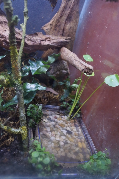 Ich habe noch keine Lösung gefunden, wie ich das Terrarium vor der Versumpfung retten, bzw der Versumpfung vorbeugen kann. Es bräuchte so etwas wie einen Überlauf (wie im Schwimmbad der Menschen) und unter dem Becken einen Ablaufhahn am Terrarium. Was anderes ist mir bis jetzt noch nicht eingefallen.