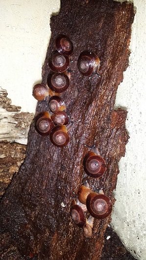 Im Jungtierterrarium stecken sie meist under dem Holz. Sie fressen gerne Pilze (Austern, Krautlinge) und Süsskartoffeln.