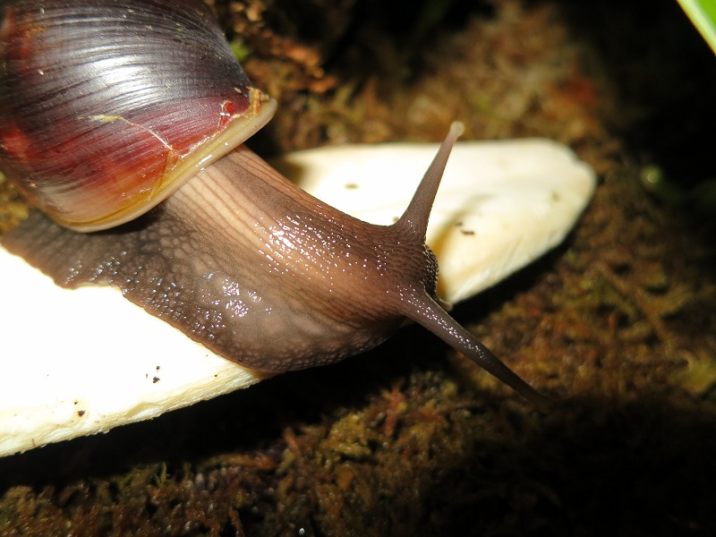 Meine allererste Achat-Schnecke (Achatina Fulica) kam dann an und folgende Schäden wurden durch das Versenden sichtbar (die Schnecken wurden mustergültig verpackt !!, sie sind jedoch besonders am Wachstumsrand sehr empfindlich. Der Stress des Versendens tut sicher sein übriges):