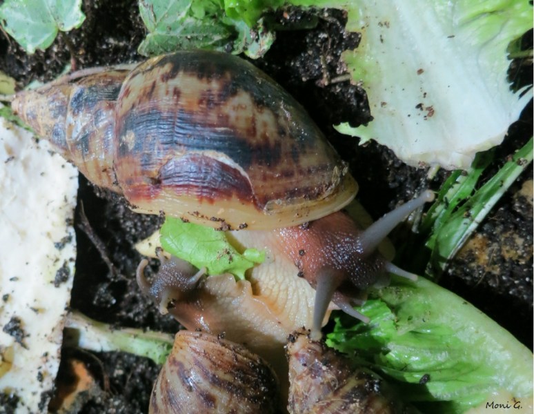 Aufgefallen ist jedoch, dass die Schnecke sehr viel in dieser Zeit gefressen hat, hauptsächlich Gemüse. Daneben sass sie zT stundenlang in einem Heilerdebad und nahm viel Kalzium über die Aufkalkung vom Boden sowie von der Sepiaschale auf. Auch wurde Löwenzahn (Kalziumreich !) bevorzugt in der Zeit gefressen.
