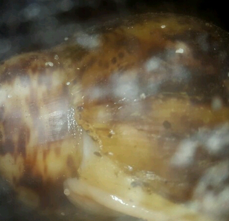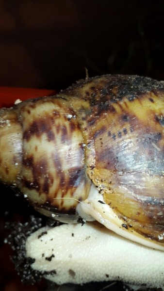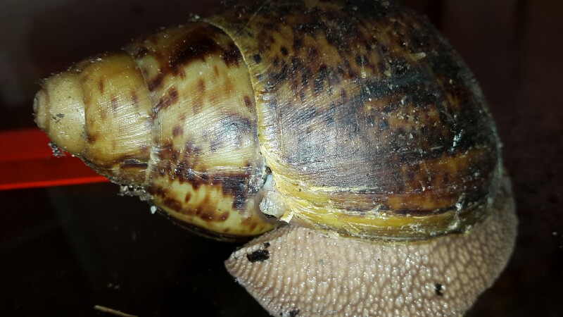 Die anderen drei gesunden Schnecks sind inzwischen riesig und beschmeißen mich seit dem Sommer mit Gelegen. Die vierte ist gegen die anderen sehr klein, noch nicht geschlechtsreif und recht inaktiv. Ich schätze, das ist auch ein bisschen "Selbstschutz", da das Gehäuse durch die Wachstumsstörung an der Naht einfach nicht mehr mitwächst und die Schnecke gut daran tut, wenn sie nicht so viel futtert und wächst.
