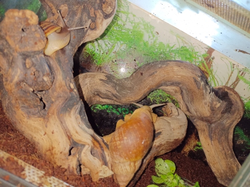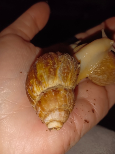 Dann da ich mir gedacht habe das es den Schneckis bis auf Kalk & Protein Mangel ... (Nichts ansteckendes) soweit gut geht, wollte ich mal ausprobieren ob sie sich mit meinem Clyde verstehen - tun sie nicht obwohl alles Lissachatina fulcia sind ¯\_(ツ)_/¯