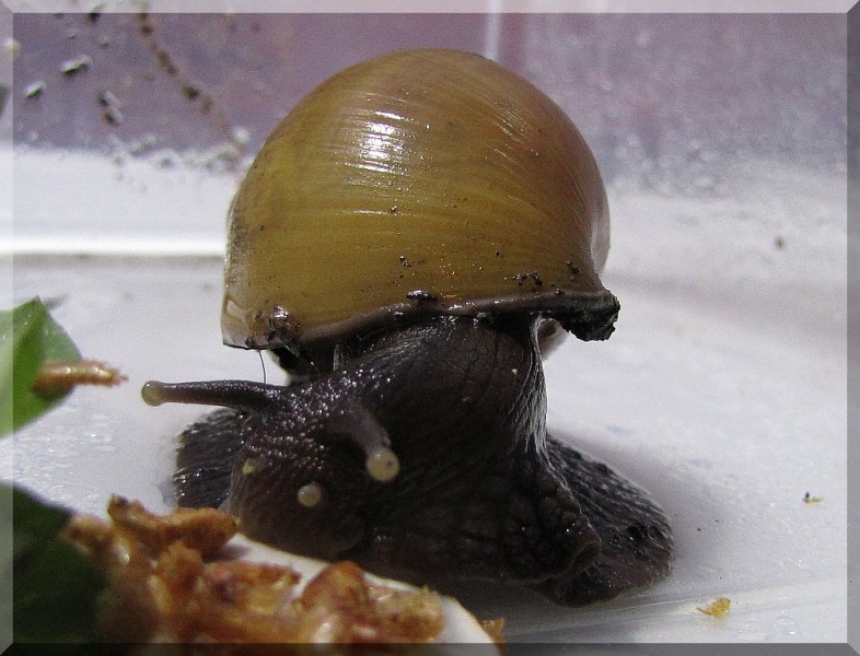 Er scheint mächtig Hunger zu haben und hat sich über die Gammarus hergemacht. Als ich ihn dann wieder ins Terra gesetzt habe, fraß er noch die ganze Pilzscheibe und etwas Vogelmiere.