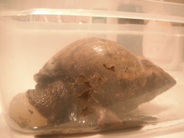 Die Schnecke besitzt ein ca. 10 cm grosses Haeuschen und ist 1.5 Jahre alt. Die Blase ist ca 2 cm gross und veraendert sich groessenmaessig ab und zu ein bisschen. Sie ist nicht schaeumend.