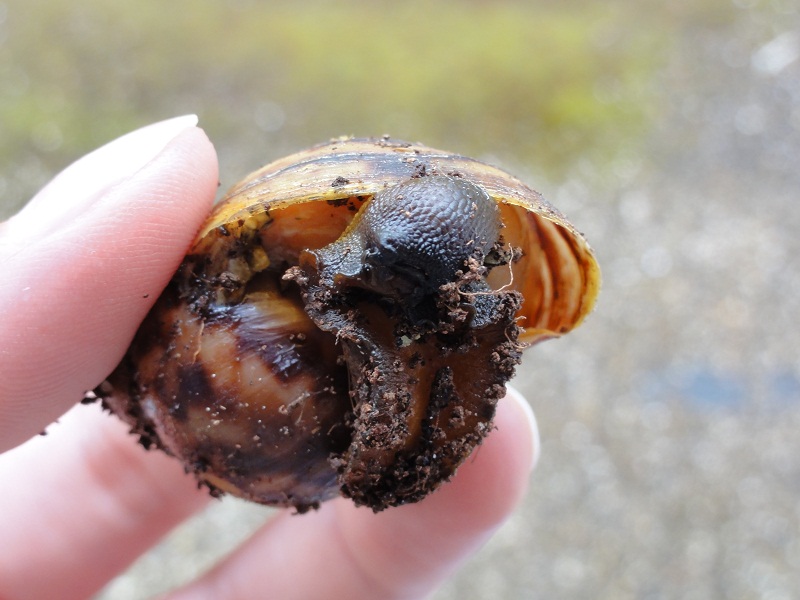 Ein weiteres Archachatinchen macht mir auch noch Sorgen, da es den Fuß merkwürdig geschlungen im Haus hat und sich ebenfalls nicht rührt. Dem Rest des Kindergartens geht es zum Glück aber prima.