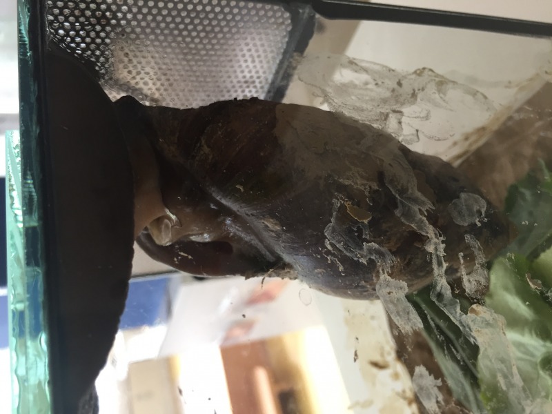 Was mich verwundert, dass sie (wenn auch nicht schön) noch an der Scheibe "pappen" kann. Das ist bei einem totalen Mantelvorfall doch eigentlich nicht mehr möglich. Da hängt die Schnecke schon sehr schlaff aus dem Häuschen, kann sich kaum.. nicht mehr fortbewegen und auch meistens in ihr Häuschen nicht mehr zurückziehen.
