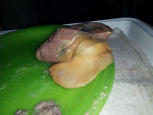 Hallo ihr Lieben ich brauche dringend einen Rat wie ihr sehen könnt ist bei meiner Schnecke das Haus kaputt, sie hat ein großes Loch zu dem sie herausschaut zuerst habe ich sie zurück geschoben, wie auf den Fotos zu erkennen ist doch ihr Atemloch lag ziemlich weit in der Schale so dass sie den Innenraum vollgekotet hatte und ich Bedenken hatte, dass sie sich infizieren könnte oder gar ersticken könnte durch die Plastikfolie konnte ich sehen, dass sie eigentlich zu der kaputten Stelle hinausgehen möchte darum habe ich gestern den Verband abgemacht und sie so gelassen wie sie es möchte lediglich einen kleinen Schutzschirm habe ich ihr angelegt ich habe scharfkantige Schalenteile entfernt... was kann ich nur tun sie hatte sich beim ersten Schutzverband zurückgezogen und so habe ich Angst dass sie austrocknet bitte gib mir einen Tipp...