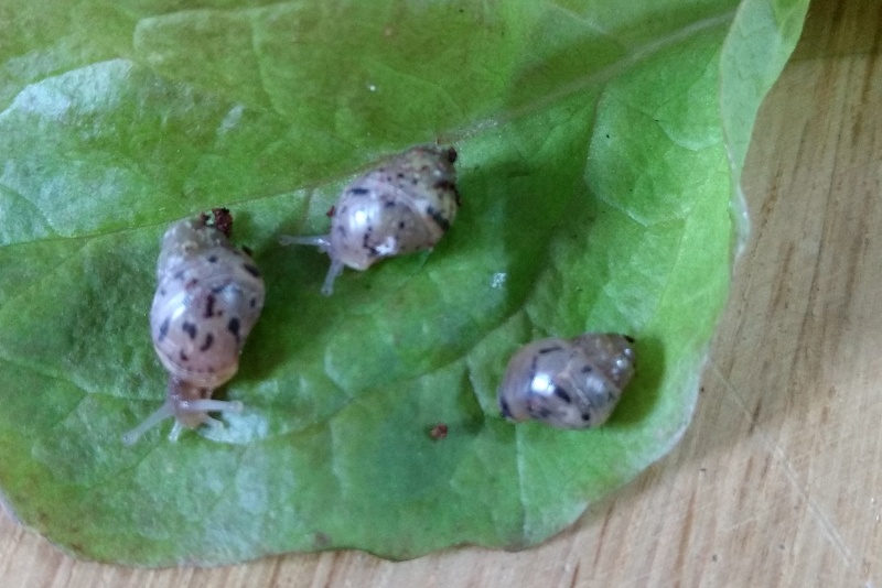Zwei der Schnecken entwickeln sich prächtig, doch eine von ihnen scheint nicht mehr zu wachsen. Sie war anfangs die Größte und ist mittlerweile deutlich kleiner als die anderen. Außerdem ist der Bereich des Wachstumsrands komplett durchsichtig wie Glas und papierdünn. Ich sehe die Schnecke manchmal beim Fressen und zum Kalk kriecht sie auch, aber insgesamt ist sie deutlich inaktiver als die anderen beiden.