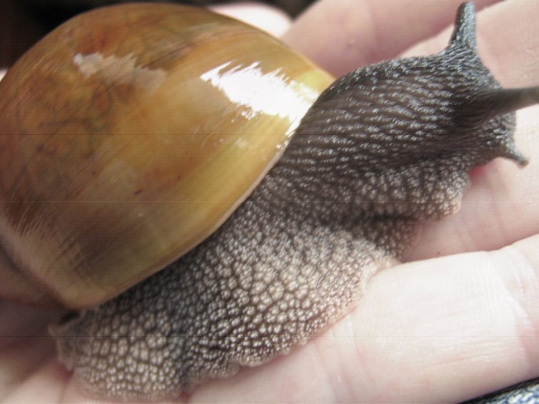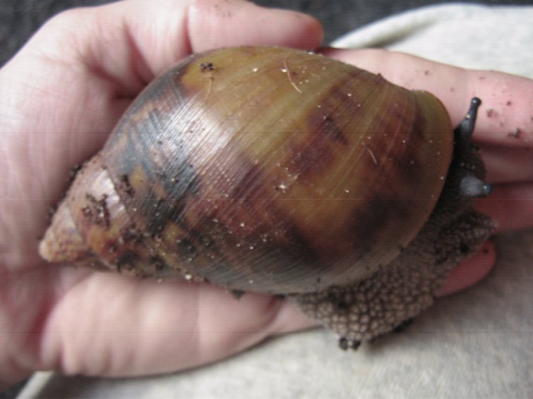 Und zwar habe ich ein Jungtier, welches von Anfang an einen hellen Fuß hatte und ein honigfarbenes Haus mit schönen dunklen Streifen. Nun dunkelt der Fuß etwas nach, von grau- rosa auf eher bräunlich- beige und das Haus verliert seine dunklen Streifen.