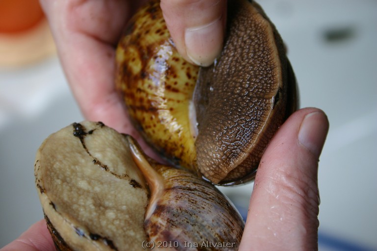 also so wie ich das sehe handelt es sich um marginata ovum. Die Columella ist bei dieser ja mehr oder weniger intensiv gelblich, orange, pfirsichfarben oder leicht ins lachsfarbene gehend. Es stimmt, dass die Columella bei marginata marginata weiß oder bläulich-weiß wie bei fulica ist. Das ist auch schon das einzige Unterscheidungsmerkmal zu ovum. Die Nominatform scheint nur sehr selten importiert zu werden, was vermutlich daran liegt, dass die meisten marginatas aus der Gegend von Lagos in Südnigeria importiert werden, wo ovum die häufigste marginata-Variante ist.