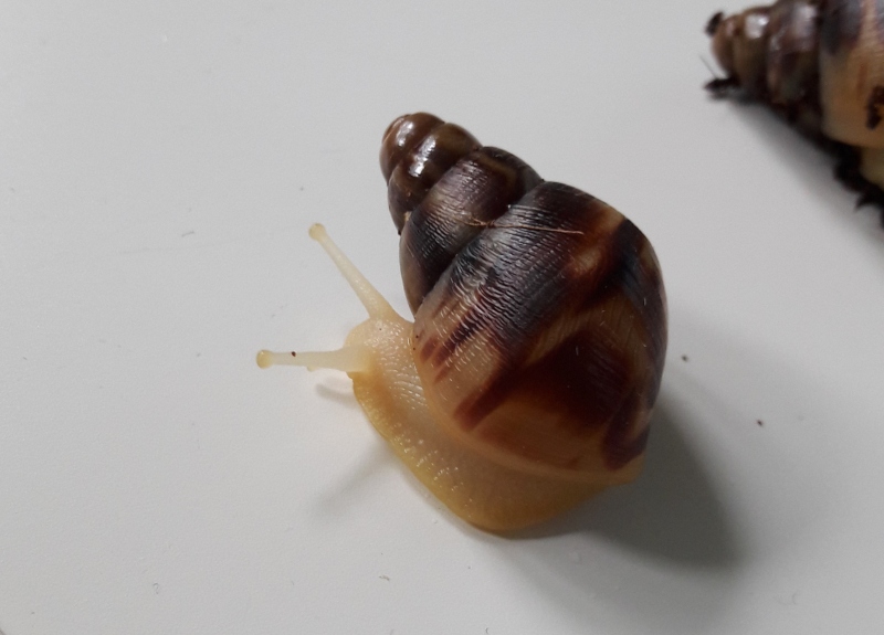 , ich habe seit einigen Wochen 11 kleine Achatschnecken und bräuchte eure Hilfe zur genauen Bestimmung, da die Person von der ich Sie habe es selber nicht genau wusste.Geschlüpft sind meine Schnecken mitte Juli. Die Eier waren ca. 5mm groß und das Gelege hatte ca. 60stück. Auf 2 Bildern ist das Muttertier zu sehen (mehr Bilder davon habe ich leider nicht).
