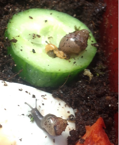 ich bin seit 4 Wochen stolze Besitzerin von 2 Achatina fulica. Von einem Züchter bekamen wir 6 Eier, da wir den gesamten Zyklus der Schneckenentwicklung beobachten wollten. Leider sind nur 2 der kleinen geschlüpft aber diese entwickeln sich prächtig und futtern wie die Weltmeister.