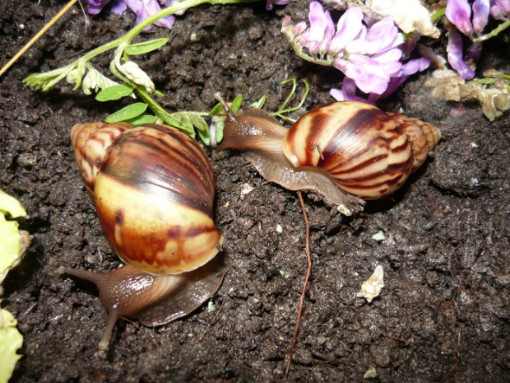 Links meine A. Fulica und rechts die unbekannte Schnecke!